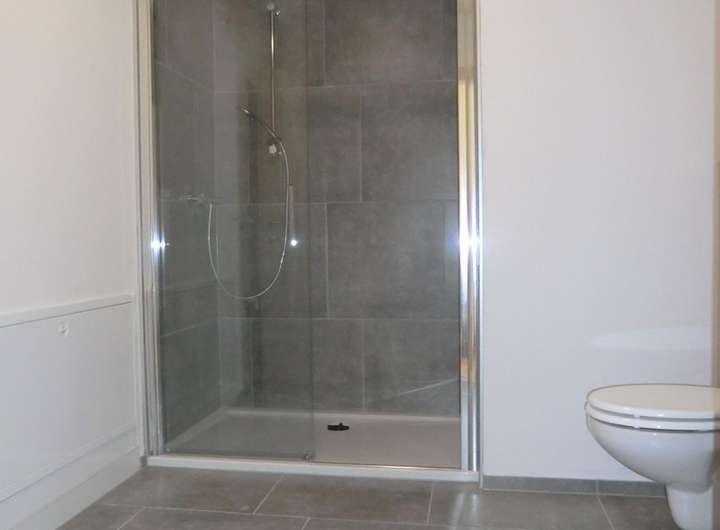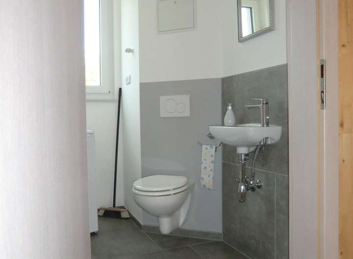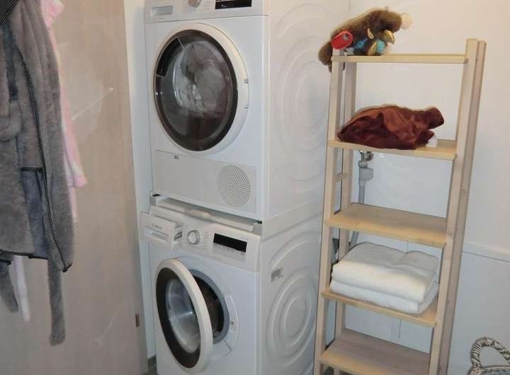 Geräumiges Bad, große Dusche, Waschmaschine & Trockner und