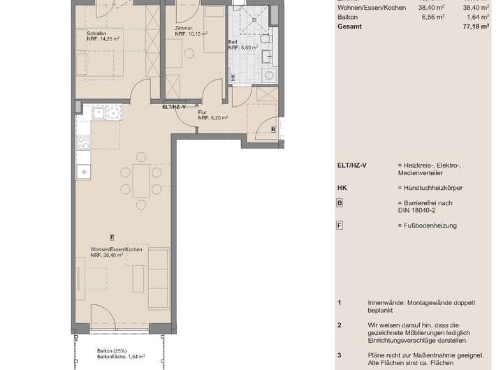 | Gesamtmiete | 1.119 € (zzgl. Heizkosten) |
