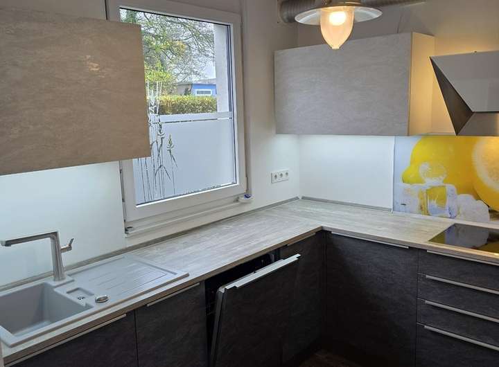 Nachdem man die Eingangstür betreten hat, steht man in dem kleinen aber feinen und stilvoll eingerichteten Flur. Zur rechten Seite finden Sie das Gäste WC. Nach einer weiteren Tür gelangen Sie in das offen gehaltene Wohn- und Esszimmer mit angrenzender Küche. Von hier aus gelangen Sie auch durch eine große helle Fensterfront auf die überdachte Terrasse mit LED Lichtern in den schön und geschmackvoll eingerichteten Garten, wo man Grillpartys oder ruhige Abende genießen kann. Im Garten ist ebenfalls ein Gartenhaus zu finden, sowie am Ende des Gartens einen Kellerersatzraum.