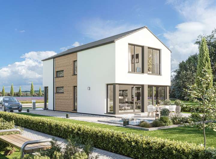 Das projektiert Fertighaus BALANCE 120 ist ein echtes Raumwunder, das speziell für Ihre Bedürfnisse konzipiert wird. Auf einer Wohnfläche von 120 m² entfaltet sich ein durchdachtes Raumkonzept, das mit 4,5 Zimmern, drei Schlafzimmern und einem Badezimmer ideal für eine vierköpfige Familie ist. Die lichtdurchfluteten Räume werden durch großflächige, hausbreite Verglasungen, die sogar über Eck reichen können, optimal in Szene gesetzt. Hier erleben Sie eine harmonische Verbindung von modernem Design und Funktionalität, die das tägliche Leben bereichert und für eine angenehme Wohnatmosphäre sorgt. Mit zwei Etagen bietet das Haus nicht nur ausreichend Platz für Rückzug und Privatsphäre, sondern auch eine durchdachte Aufteilung, die Familienleben und gemeinschaftliche Momente in den Fokus rückt.