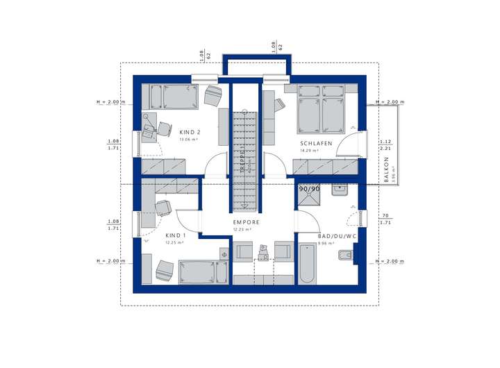Im Obergeschoss erwartet Sie eine lichtdurchflutete Empore, die den Zugang zu drei gemütlichen Zimmern ermöglicht, ideal für Eltern und Kinder. Das Familienbad rundet das Raumangebot harmonisch ab und sorgt für ein angenehmes Wohnklima. Die geschickte Aufteilung fördert sowohl die Privatsphäre als auch die familiäre Gemeinschaft, wodurch Ihr Zuhause sowohl Rückzugsorte als auch gesellige Bereiche bietet.