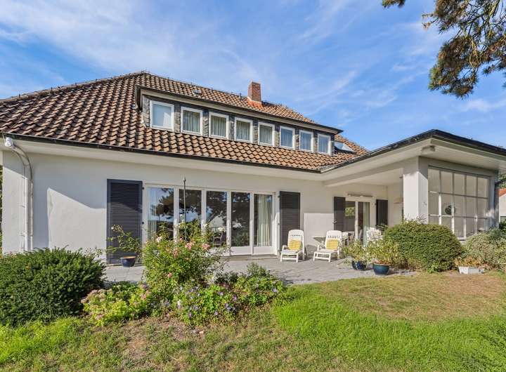 Auf ca. 235 m² Wohnfläche und ca. 197 m² Nutzfläche befinden sich insgesamt 9 Zimmer und drei Bäder. Das Gebäude bezaubert mit dem schönen Garten, dem Blick bis zum Kronsberg und den markanten Architekturlinien.