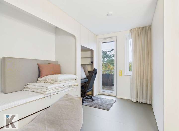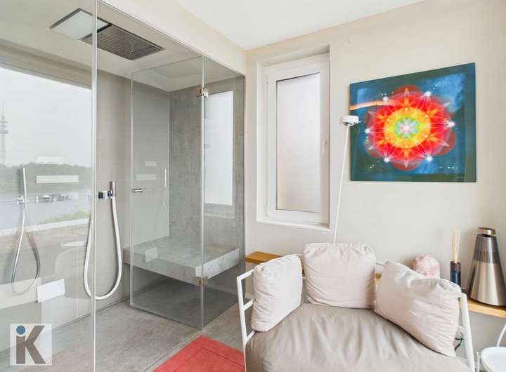 Auch technisch spielt dieses Penthouse in einer eigenen Liga. Ein umfassender Elektrosmogschutz in allen Schlafräumen und Fußböden, LAN-Verkabelung zur Minimierung von Funkstrahlung sowie abschaltbare Stromkreise für erholsamen Schlaf zeigen, dass hier kein Detail dem Zufall überlassen wurde. Besonders beeindruckend: Der gesamte Stromkreislauf der Wohnung lässt sich auf ein Notstromaggregat umschalten, das diskret auf dem Balkon installiert ist – ein durchdachtes Sicherheitsfeature, das man nur selten findet.