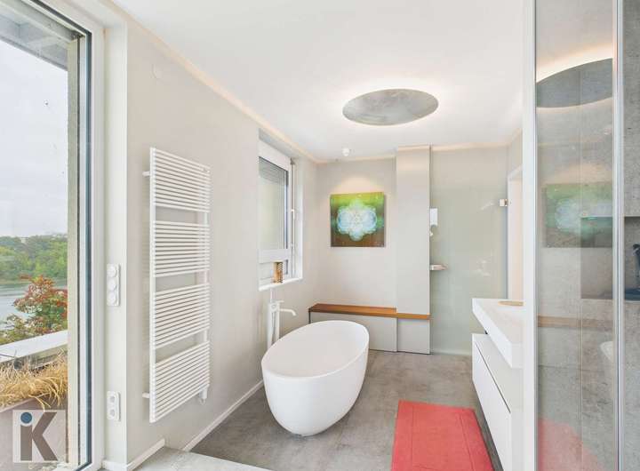 Panoramafenster in den Wohn- und Schlafzimmern für lichtdurchflutete Räume und Seeblick