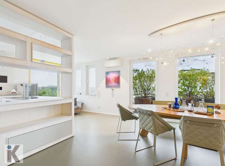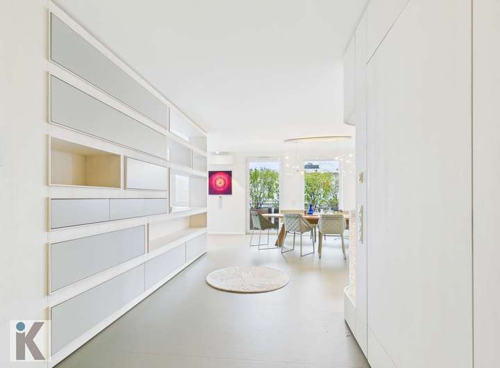 Willkommen in einem Zuhause, das mehr ist als nur ein Ort zum Wohnen – dieses exklusive Penthouse vereint Stil, Ruhe und höchste Lebensqualität in perfekter Harmonie. Bereits der direkte Fahrstuhlzugang in die Wohnung vermittelt ein Gefühl von Privatsphäre und Eleganz. Hinter der Eingangstür eröffnet sich ein Wohnraum voller Licht, Großzügigkeit und Raffinesse – ein Ort, der mit jedem Detail begeistert.