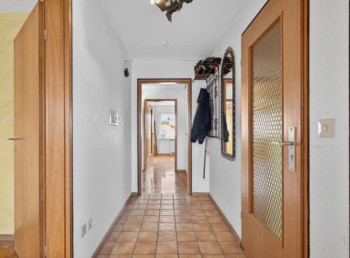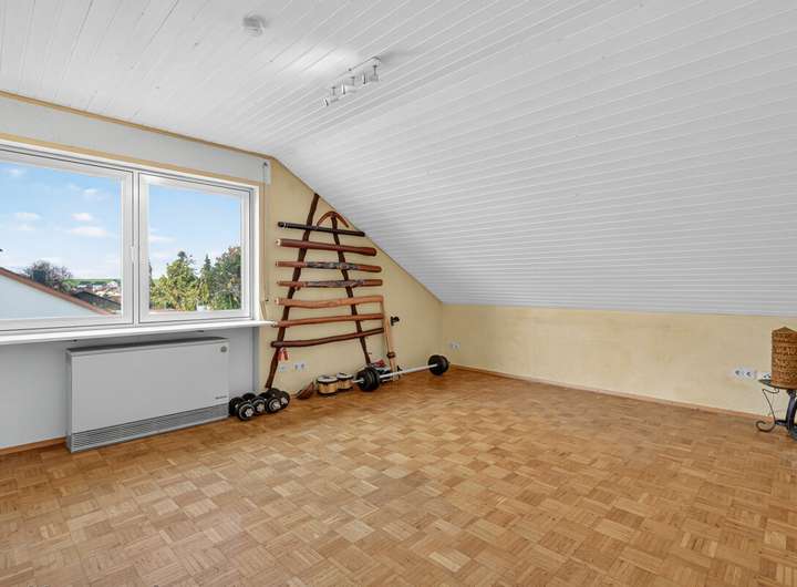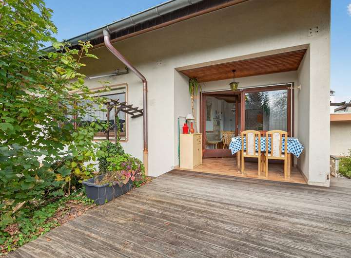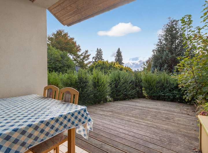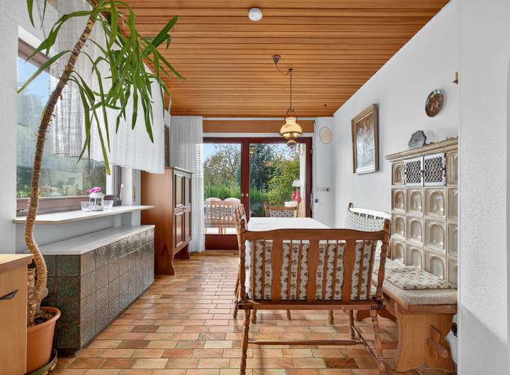 Im Erdgeschoss erwartet Sie eine helle und freundliche Wohnatmosphäre mit einem gemütlichen Kachelofen, der in der kühleren Jahreszeit für wohlige Wärme sorgt. Vom Esszimmer aus gelangen Sie direkt auf die Terrasse mit Zugang zum Garten – ideal zum Entspannen oder für gesellige Stunden im Freien. Zusätzlich gibt es zur Nordseite hin noch eine zweite Terrasse mit teilweiser Überdachung.