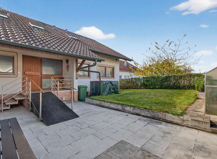 Ein besonderes Plus: Durch die Nutzung als Zweifamilienhaus und die separaten Zugänge bietet sich die Möglichkeit, eine Wohneinheit zu vermieten und so die Finanzierung langfristig zu unterstützen. Durch den Umbau des Badezimmers im EG, sowie durch die Rampe am Hauseingang ist die Wohnung auch hervorragend für Senioren geeignet.