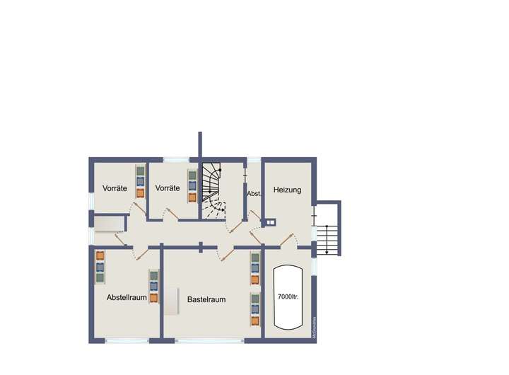 - Trennwände: Ziegel HLZ, Bimshohlblock