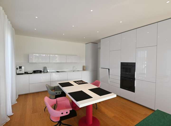 Diese moderne 4-Zimmer-Wohnung im 2. Obergeschoss überzeugt durch ihre hochwertige Einrichtung und Möblierung sowie eine durchdachte Raumaufteilung. Ein Aufzug ermöglicht einen komfortablen Zugang. Der großzügige Wohn- und Essbereich mit offener Küche bildet das Herzstück der Wohnung und bietet viel Platz für gemeinsame Stunden. Zwei Schlafzimmer sorgen für Rückzugsmöglichkeiten, während zwei helle Tageslichtbäder zusätzlichen Komfort bieten. Der weitläufige Balkon lädt zum Entspannen ein und erweitert den Wohnraum ins Freie. Ein separater Hauswirtschaftsraum rundet das attraktive Gesamtbild dieser besonderen Wohnung ab. Zusätzlich stehen zwei Tiefgaragenstellplätze sowie zwei Außenstellplätze zur Verfügung, die für ein hohes Maß an Komfort und Flexibilität sorgen.