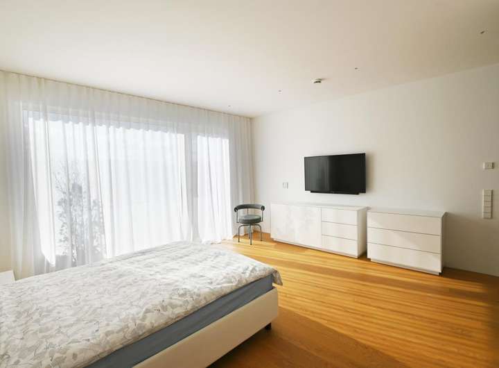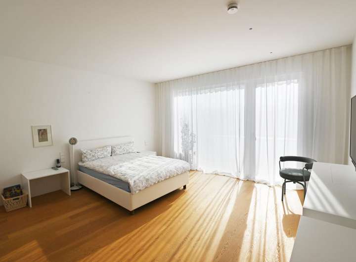 - Die Wohnung ist mit hochwertigen Echtholzparkett-Böden ausgestattet.