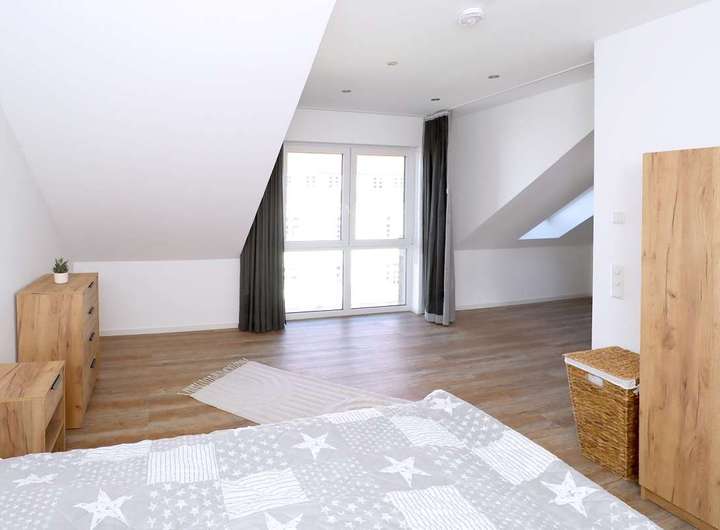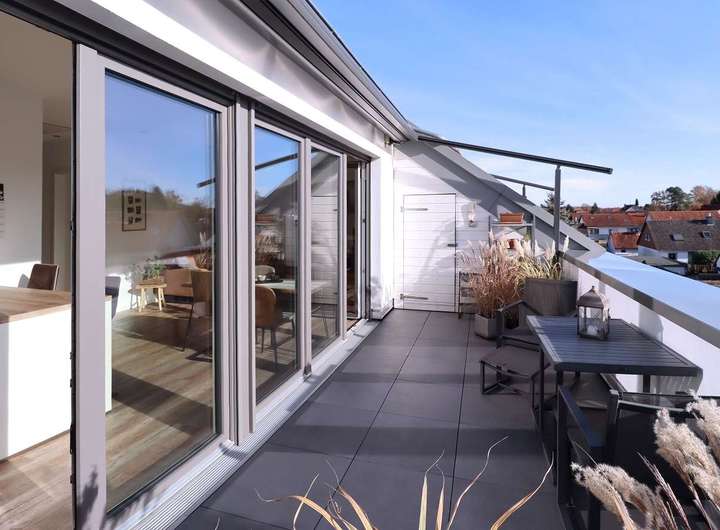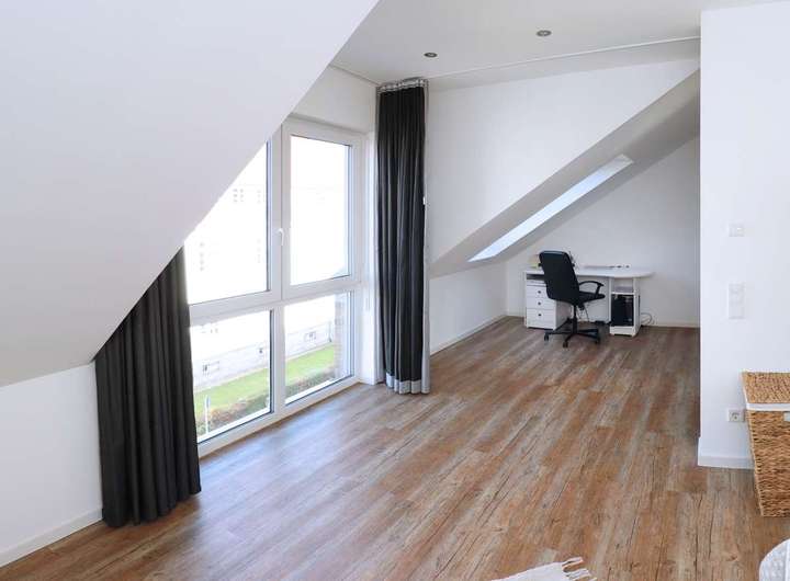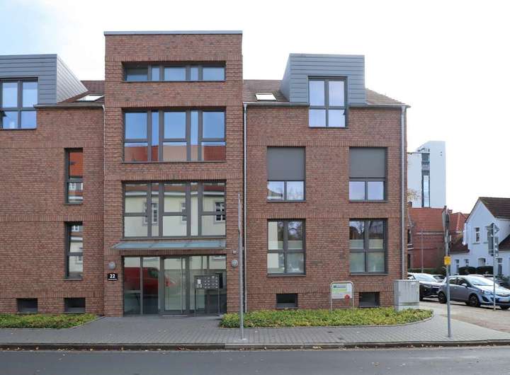 Die ausgeschriebene Immobilie bietet eine moderne und offene Raumaufteilung und befindet sich im Dachgeschoss eines Mehrfamilienhauses mit zwei Aufgängen und insgesamt 16 Eigentumswohnungen.