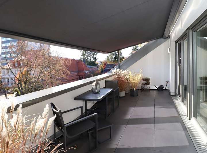 • Schöne und sonnige Loggia inkl. Abstellraum in Süd-Ausrichtung & elektr. Markise