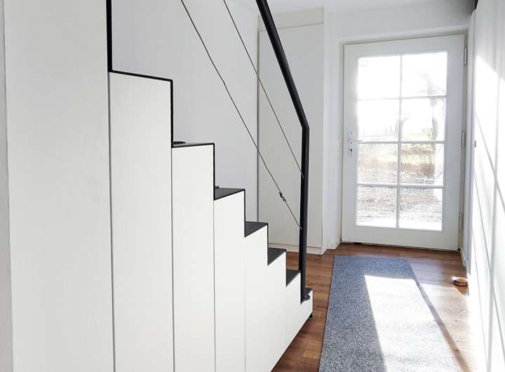 Über eine offene Treppe gelangt man ins Obergeschoss, das mit drei gemütlichen Schlafzimmern, einer offenen Empore und einem weiteren Tageslichtbad mit begehbarer Dusche begeistert. Die Empore mit Blick in den Wohnbereich schafft eine wunderbare Verbindung zwischen den beiden Etagen und lädt zum Lesen, Arbeiten oder einfach zum Verweilen ein.