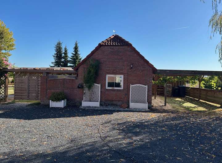 Abgerundet wird das Ensemble durch eine separate Werkstatt mit ca. 60 m² Nutzfläche – ideal für Kreative, Handwerker oder als zusätzlicher Stauraum – sowie zwei Carports.