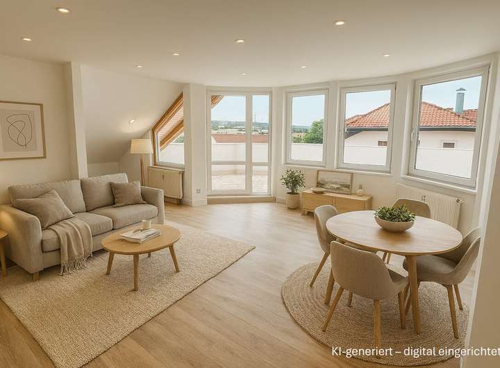 Sie sind auf der Suche nach einem großzügigen Zuhause mit Platz für die ganze Familie, Rückzugsmöglichkeiten für das Homeoffice und sonniger Dachterrasse zum Genießen? Dann könnte diese Dachgeschosswohnung genau das Richtige für Sie sein.