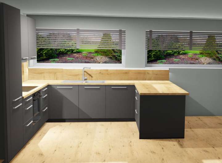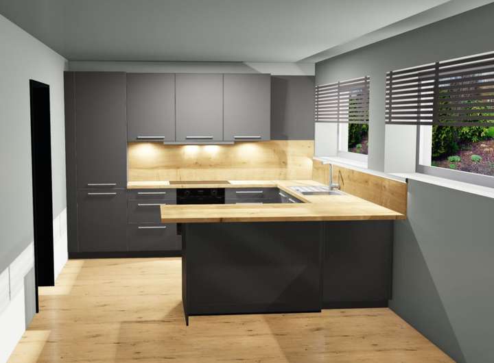 Die Einbauküche wird voraussichtlich in der 2. KW 2026 eingebaut. Die E-Geräte sind von NEFF und die Spülmaschine ist von Miele. Das Kochfeld ist induktiv. Unter der Fensterbank läuft ein LED-Band.