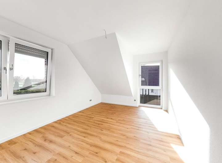 Weiße Innentüren unterstreichen das moderne und zeitlose Wohnkonzept und fügen sich harmonisch in das helle Interieur ein. Im Obergeschoss sind die Zimmertüren zusätzlich mit Oberlichtern ausgestattet.