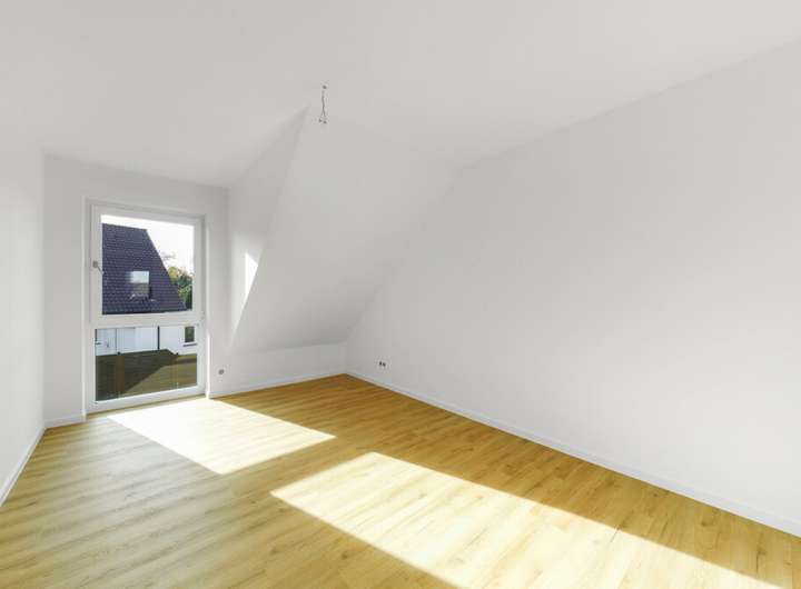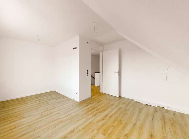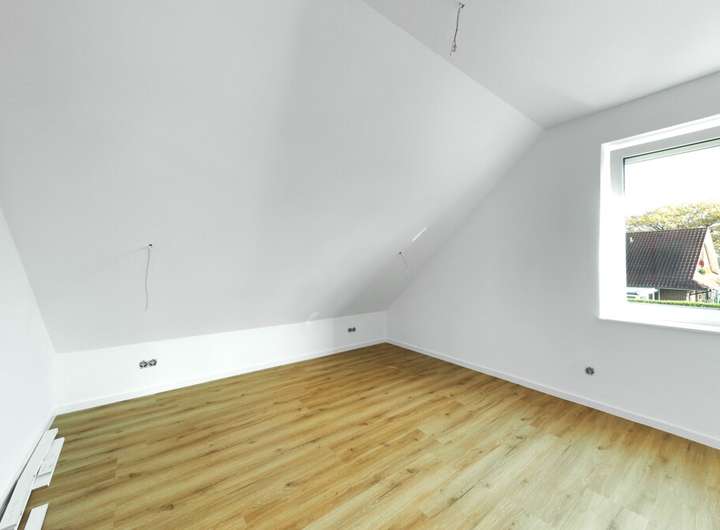Der gedämmte Dachboden bietet zusätzlichen Raum mit vorhandenen Anschlüssen, sodass er sich ideal als Homeoffice-Bereich oder praktischer Stauraum nutzen lässt.
