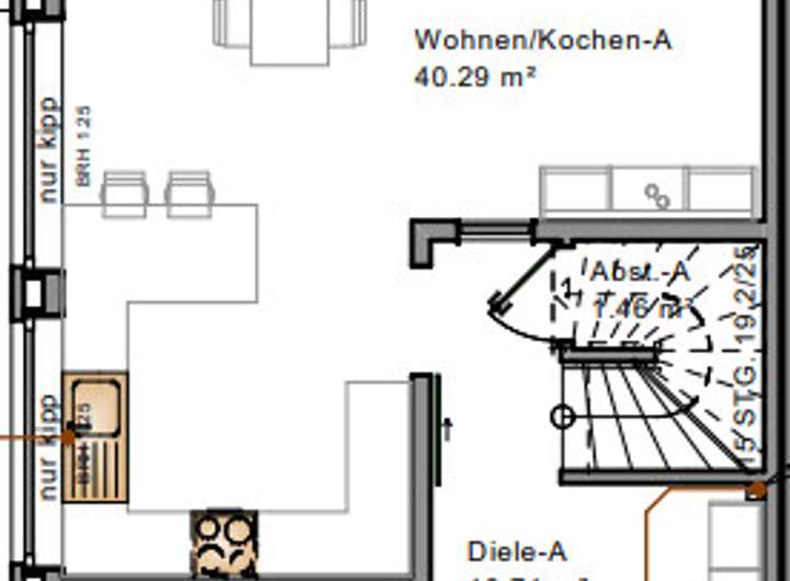 - lichtdurchfluteter Wohn-, Ess- und Kochbereich inkl. hochwertiger Einbauküche und mit direktem Zugang zum Garten