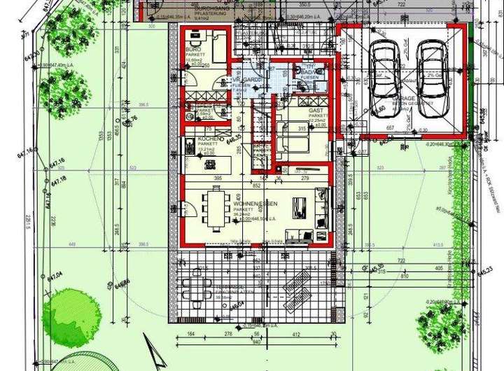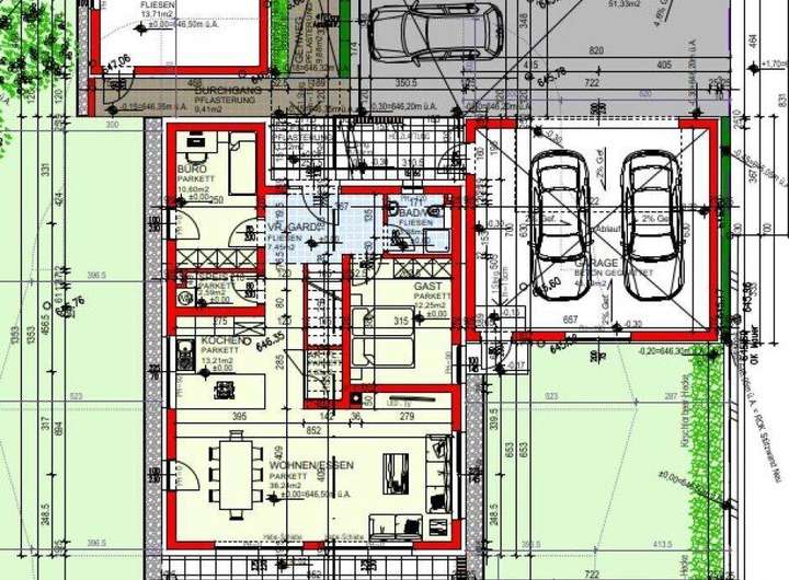 Ein bewilligter Einreichplan für ein zweistöckiges Einfamilienhaus mit ca. 150 m2 Wohnfläche liegt bereits vor (siehe Pläne im Anhang bzw. VISUALISIERUNGEN hier im Exposé) und könnte ohne Zusatzkosten übernommen werden. Die Baubewilligung ist ebenfalls schon ausgestellt. Sie können aber natürlich auch Ihr persönliches Traumhaus umsetzen!