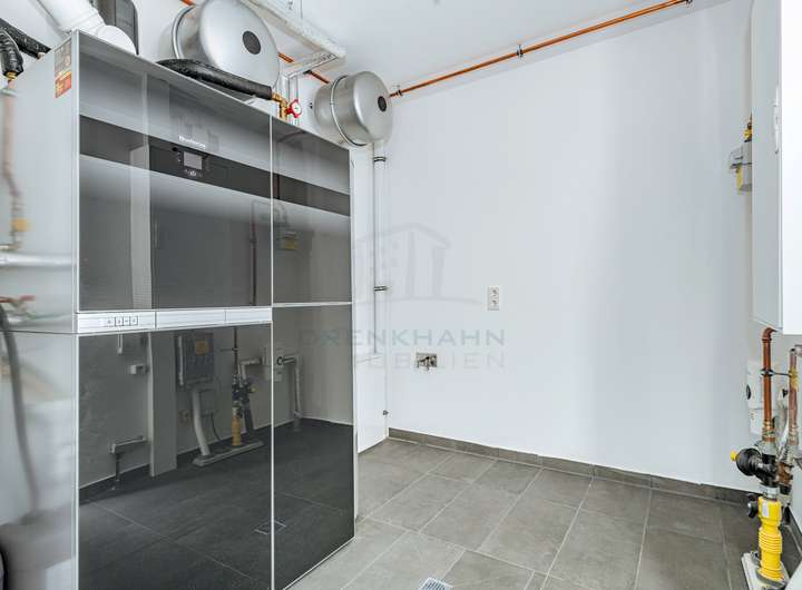 Das Haus ist nicht unterkellert. Beheizt wird komfortabel über eine Fußbodenheizung, die durch eine moderne Gas-Brennwerttechnik mit Solar-Unterstützung betrieben wird. Bitte beachten Sie: Die im 360°-Rundgang dargestellte Küche ist nicht Bestandteil des Angebotes und entstammt einer baugleichen Doppelhaushälfte.