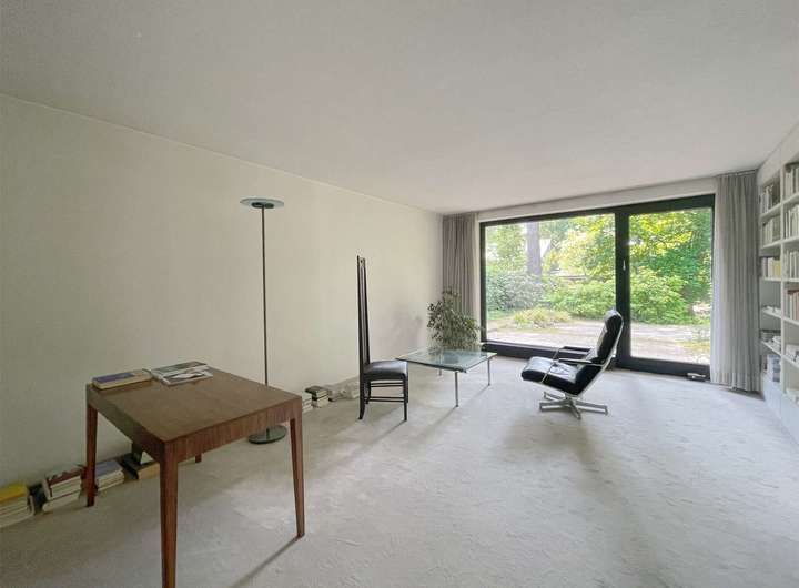 Das Einfamilienhaus wurde ca. 1971 errichtet und bietet derzeit rund 160 m² Wohnfläche. Der großzügige Wohnbereich mit offener Galerie, die großen Fensterflächen zum Garten und die Schlafräume im Obergeschoss zeigen die Handschrift der damaligen Architekten. Die Ausstattung ist jedoch nicht mehr zeitgemäß; es besteht ein deutlicher Modernisierungs- und Anpassungsbedarf.