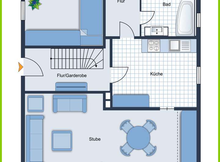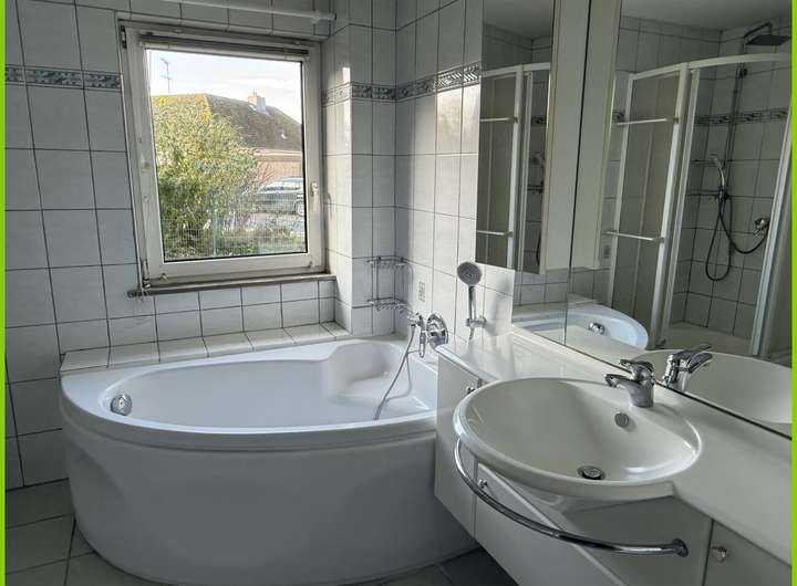 Erdgeschoss: Alle Räume sind gefliest. Die neue, moderne Einbauküche in schönen Weiß mit grauer Arbeitsplatte und Spülmaschine bietet viel Platz zum gemütlichen Kochen. Durch einen Torbogen gelangen Sie vom Küchenbereich aus in den hellen Wohn- und Essbereich, der lichtdurchflutet und einladend wirkt und ausreichend Fläche für ein Sofa , eine Schrankwand und Esszimmermöbel bietet ( der auf den Bildern zu sehende Kamin wird noch demontiert). Ein weiters flexibel nutzbares Zimmer – ideal als Schlafzimmer, Büro oder Kinderzimmer – ergänzt das Raumangebot. Ein Badezimmer mit Badewanne und Dusche ( Abtrennung wird erneuert) rundet das Erdgeschoss harmonisch ab.