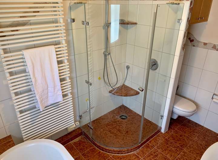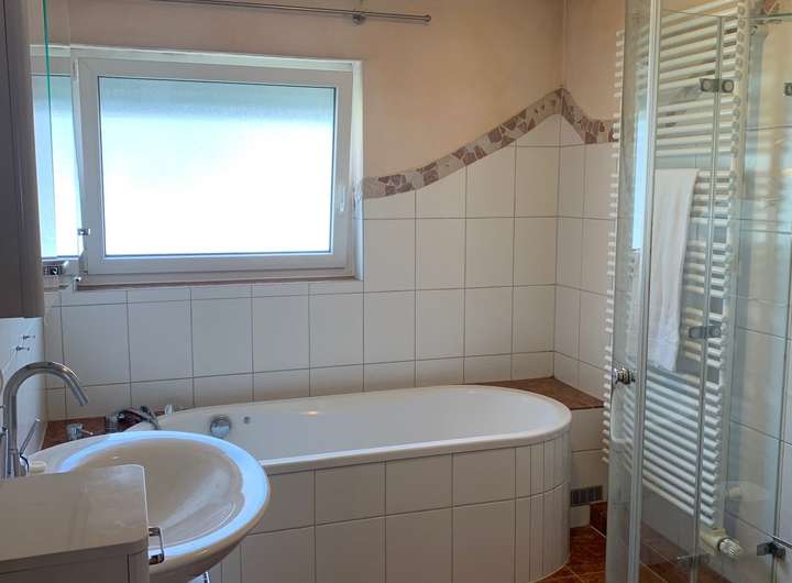 • Großes Masterbad mit Badewanne, Dusche, WC