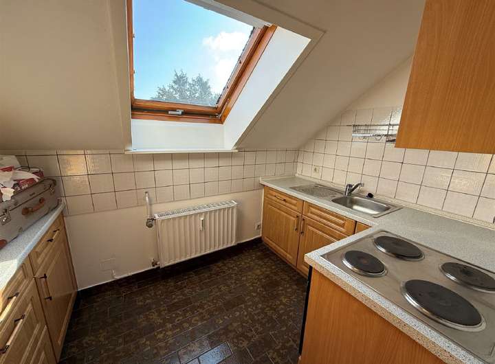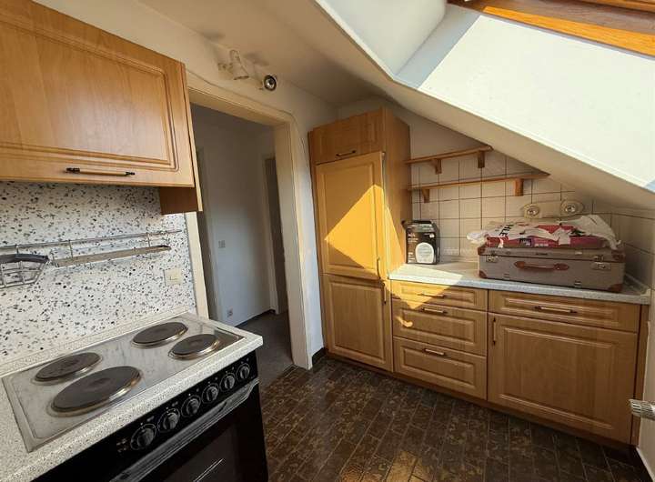 Ein Schlafzimmer hat ebenfalls Zugang zu diesem Balkon und das weitere Zimmer hat Zugang zur schönen Dachterrasse. Eine Einbauküche und ein Bad , welches mit einer Badewanne, einem Waschbecken und WC ausgestattet ist, vervollständigen diese Ebene.