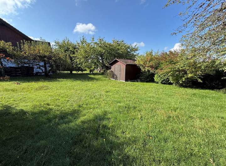 Hier haben Sie viel Platz, können die Ruhe genießen und schöne Grillabende mit Freunden und der Familie veranstalten. Das Gartenhaus ist auch schon da.
