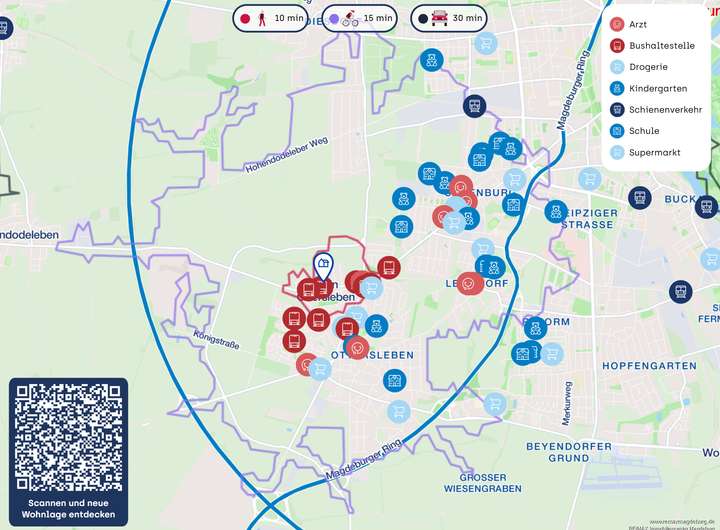 Diese Immobilie befindet sich im Stadtteil Ottersleben, einer bevorzugten Wohnlage im Südwesten von Magdeburg. Ottersleben zeichnet sich durch eine ruhige, grüne Umgebung aus und bietet dennoch eine hervorragende Anbindung an die Innenstadt, die über die B71 oder den öffentlichen Nahverkehr in etwa 15–20 Minuten zu erreichen ist. Auch die Autobahn A14 ist in kurzer Fahrzeit erreichbar und sorgt für eine gute regionale Anbindung.