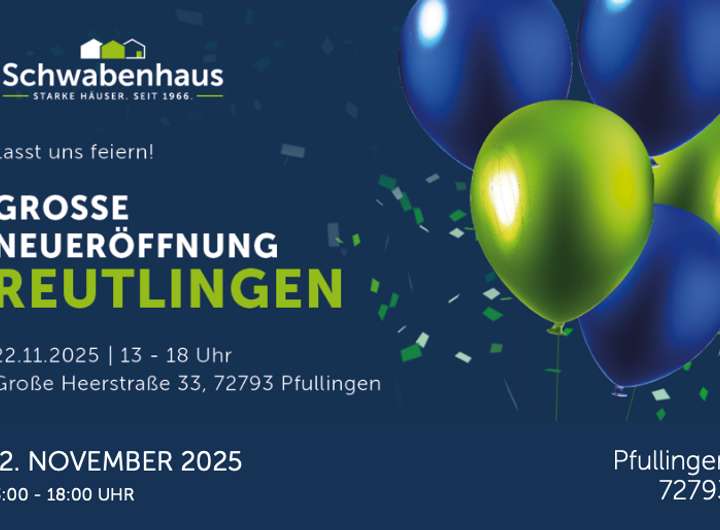 Besuchen Sie unsere große Büroeröffnung am Samstag, 22.11.2025 von 13–18 Uhr in der Großen Heerstraße 33, 72793 Pfullingen.