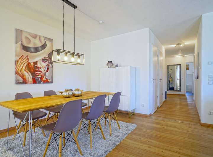 - Vinylböden in Holzoptik in allen Wohnräumen.