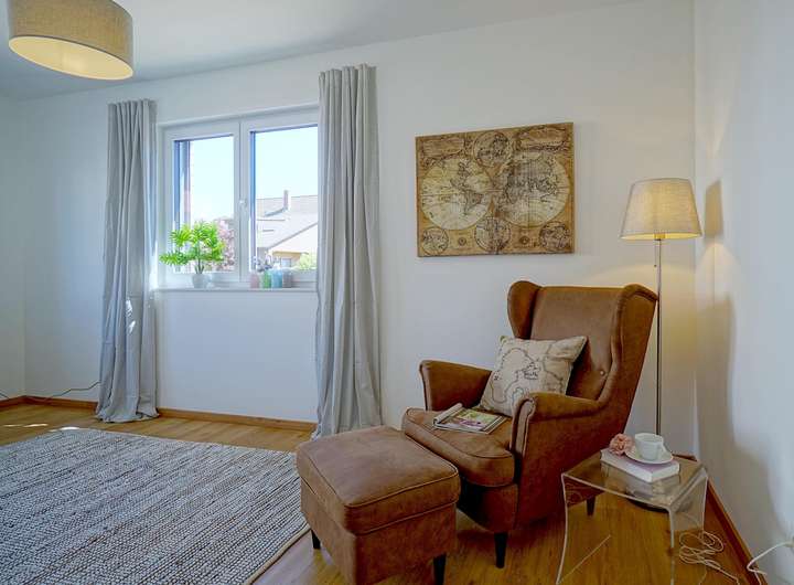 - Das Haus verfügt über eine eigene Luft-Wasser-Wärmepumpe. Es werden die Vorgaben der KfW55 erfüllt.