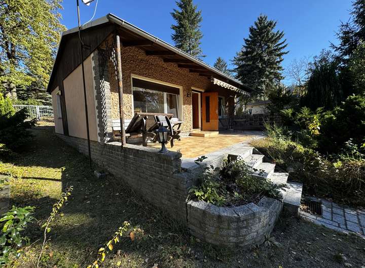 Dieses rund 700 m² große Wochenendgrundstück bietet Raum für Ruhe, Freizeit und individuelle Gestaltung. Das ebenerdige Wohnhaus aus den 1970er-Jahren umfasst etwa 60 m² mit zwei Zimmern und Keller – ideal für erholsame Tage oder den persönlichen Rückzugsort abseits des Stadttrubels. Terrasse, Gartenhaus und Pool ergänzen das liebevoll angelegte Ensemble.