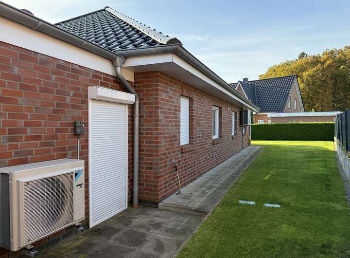 Dieser absolut gepflegte Bungalow mit Doppelgarage liegt in ruhiger Wohnlage nahe dem Zentrum von Nordholz. Ihr neues Zuhause überzeugt mit einer gehobenen Ausstattung wie z.B. Fußbodenheizung im gesamten Erdgeschoss, Klimatisierung, Terrassen- Überdachung 2-seitig geschlossen mit verschiebbaren Glas Elementen, Dreischeibenverglasung, elektrische Rollläden, Bewässerungsanlage von Gardena, neuwertiger Einbauküche mit hochwertigen Neff Elektrogeräten, um nur einige Details zu nennen. Wir möchten darauf hinweisen, dass wir uns bemühen, für alle unsere Immobilienobjekte die Angaben so richtig wie möglich zu machen. Da wir uns hierbei auf die Angaben unserer Auftraggeber stützen müssen, übernehmen wir hierfür keine Haftung. Angebote und Verkauf vorbehalten.