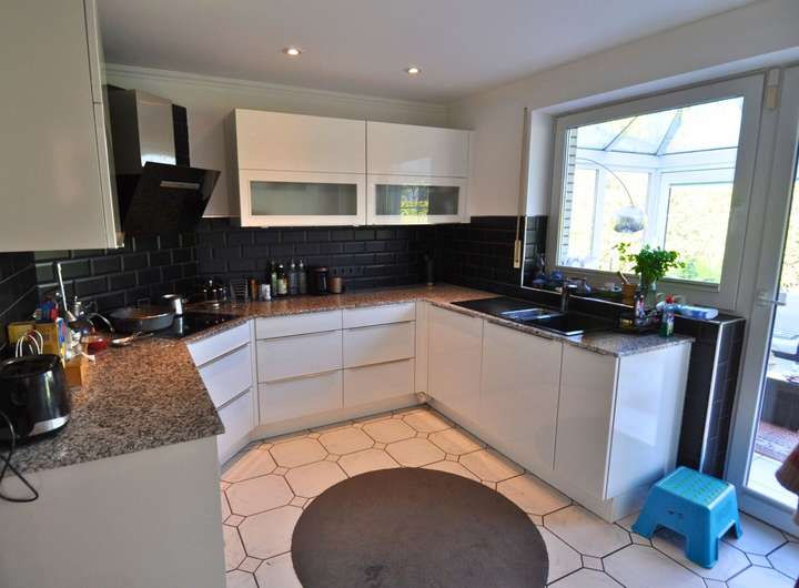 Das Haus überzeugt durch seine individuelle Raumaufteilung und den hellen, freundlichen Charakter. Insgesamt stehen vier gut geschnittene Zimmer sowie zwei moderne Badezimmer zur Verfügung. Der großzügige Wohn- und Essbereich mit direktem Zugang zur Terrasse schafft eine angenehme Wohnatmosphäre und lädt zu gemütlichen Stunden mit Familie und Freunden ein. Große Fenster sorgen für viel Tageslicht und einen schönen Blick in den Garten.
