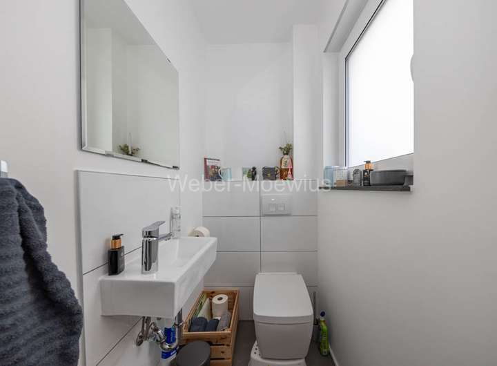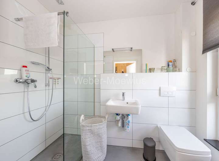 - Tageslicht-Bad im SG mit bodengleicher Dusche, Waschbecken, WC