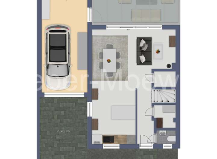- pflegeleichte Außenanlagen: Schottergarten vor + hinter dem Haus