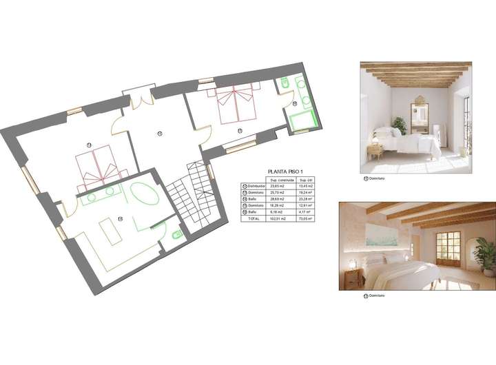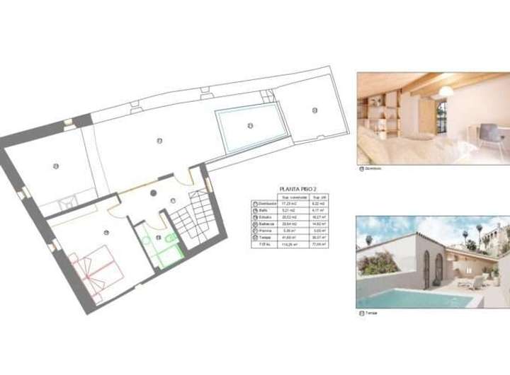 Das Highlight des Hauses findet sich im Dachgeschoss: Dort liegt ein weiteres Schlafzimmer mit Bad sowie der direkte Zugang zur exklusiven Dachterrasse. Dieser Rückzugsort bietet einen Chill-out-Bereich, einen Grillplatz und einen Swimmingpool – perfekt für entspannte Abende über den Dächern von Artà und für ein unvergleichliches Lebensgefühl.