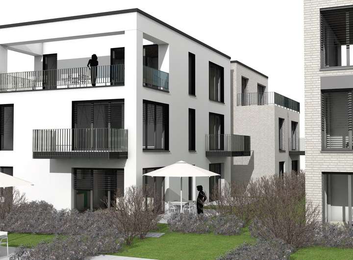 Insgesamt 17 Wohneinheiten mit Wohnflächen zwischen 70 und 182 qm gruppieren sich um den Innenhof. Dabei sind 10 Wohnungen barrierearm und 2 Wohnungen im Erdgeschoss der beiden Mehrfamilienhäuser barrierefrei ausgestattet.