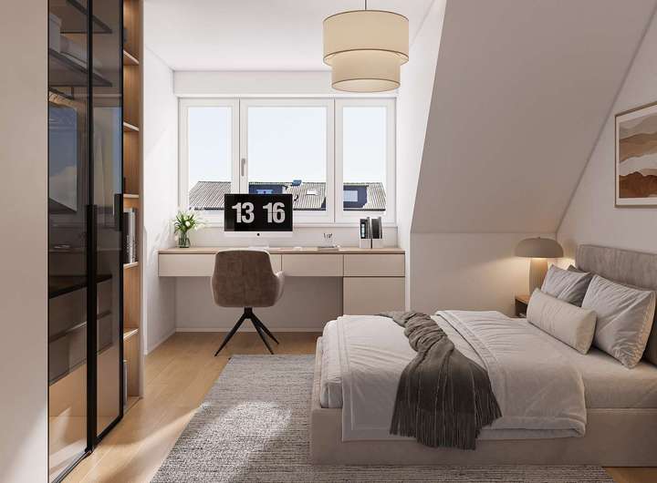 Der präzise durchdachte Grundriss ermöglicht ein modernes und freies Wohngefühl. Im Erdgeschoss sowie Dachgeschoss befinden sich zudem wohnungsbezogene Lagerräume. Im Aussenbereich finden Sie Fahrradstellplätze vor. Einige Stellplätze sind überdacht, so dass auch Ihr Fahrzeug permanenten Schutz vor Witterung und Schnee genießt.