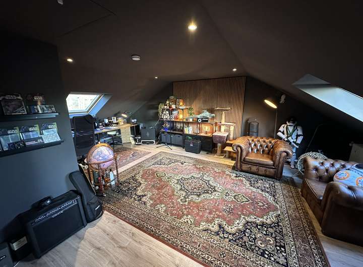 Der ausgebaute Dachboden bietet zusätzliche Möglichkeiten für Hobby, Arbeit oder ein weiteres Schlaf- oder Jugendzimmer.