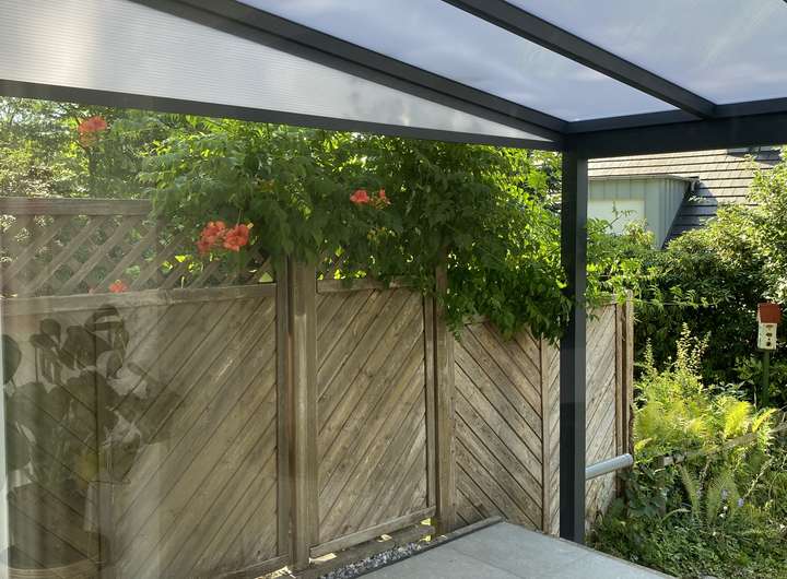 Auf dem Dach befindet sich eine 2022 installierte PV-Anlage, inkl. Wallbox am Stellplatz direkt vor dem Haus. Die zusätzliche Garage bietet Platz für ein weiteres Fahrzeug oder Fahrräder.