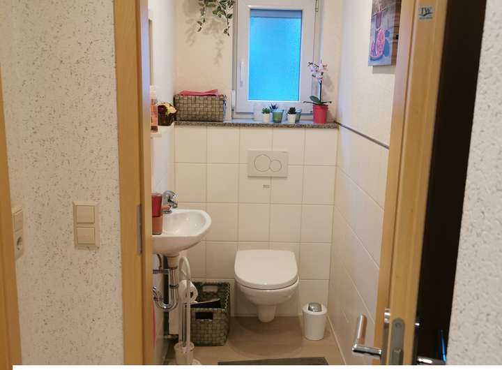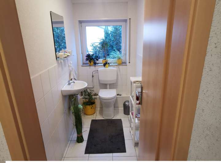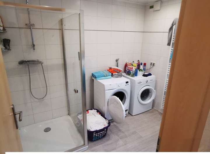Ein geräumiges Bad mit großer Dusche und ein separat angebundenes WC sind auch im Erdgeschoss vorhanden.
