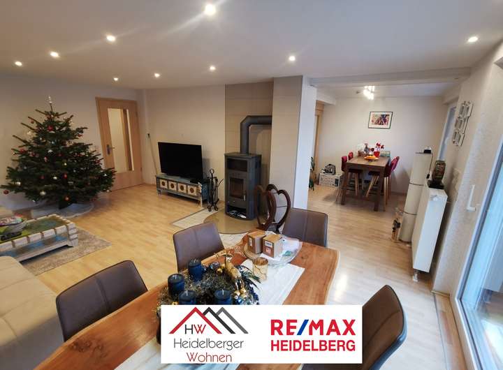 Ein Highlight ist das sehr große Wohnzimmer mit angebundenen Esszimmer. Ein 3m Schiebeelement und die Fenster im Essbereich lassen viel Licht in das Haus. An kalten Tagen sorgt der Ofen mit Schaufenster zusätzlich für mollige und knisternde Momente.