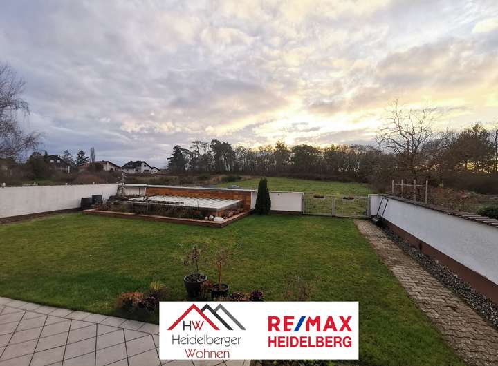 Die 9 x 3,7m messende, geflieste Terrasse mit SSW-Ausrichtung und der pflegeleichte Rasen rundet das Gesamtbild ab und lädt ein, hier den Sonnenuntergang zu genießen.