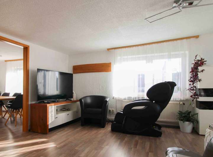Darüber hinaus können Sie dank des ca. 323 m² großen Grundstücks sowie des überdachten Balkons Regeneration an der frischen Luft genießen. Der Garten mit Terrasse bietet eine gemütliche und intime Atmosphäre voller Momente der Entspannung. Zusätzlichen Stauraum bietet die große Scheune und ein Gewölbekeller. Abschließend sorgen auf dem Grundstück 2 Garagen (Scheune), 1 Carportstellplatz und mehrere Freistellplätze für eine entspannte Parksituation.