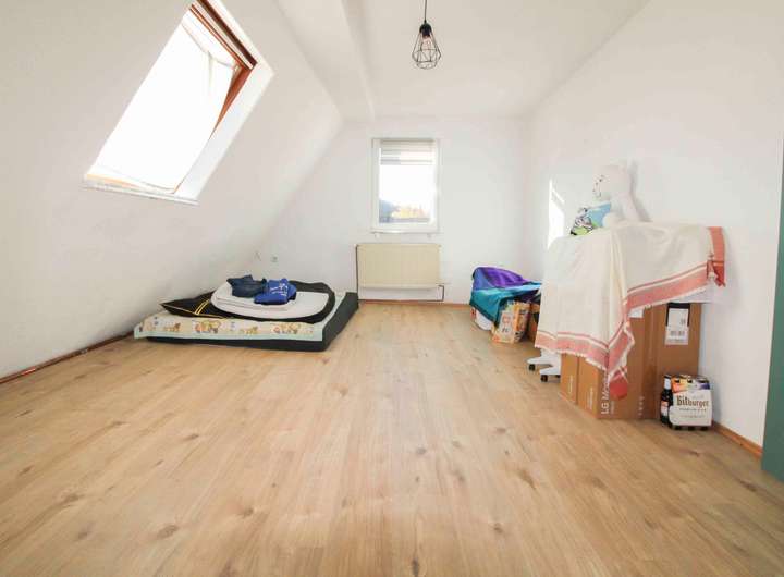 Verteilt auf 2 Etagen und eine Wohnfläche von rund 174 m² finden Sie insgesamt 9 Zimmer vor, darunter 6 Schlafzimmer, 2 Küchen sowie 2 Badezimmer mit Dusche. Im Dachgeschoss liegen bereits die Anschlüsse für ein 3 Badezimmer + 3 Küche.