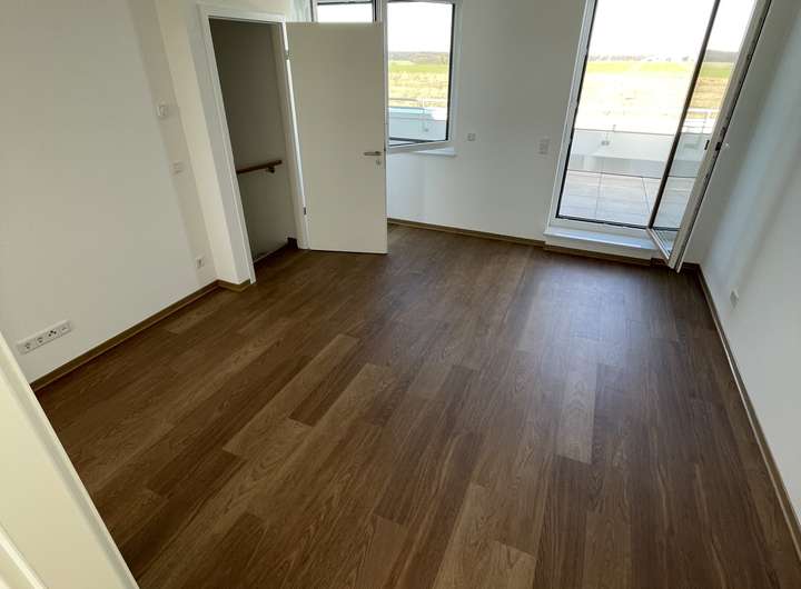 Im Erdgeschoss erwartet Sie ein offener Wohn- und Essbereich mit direktem Zugang zur Terrasse – ideal für entspannte Stunden oder gesellige Abende mit Familie und Freunden. Die moderne Einbauküche fügt sich harmonisch in den Wohnraum ein und ist bereits im Mietpreis enthalten.